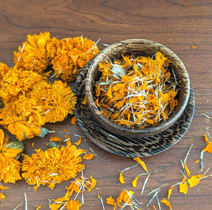 Organic dried marigold flowers – natural botanical for tea, skincare, and potpourri.